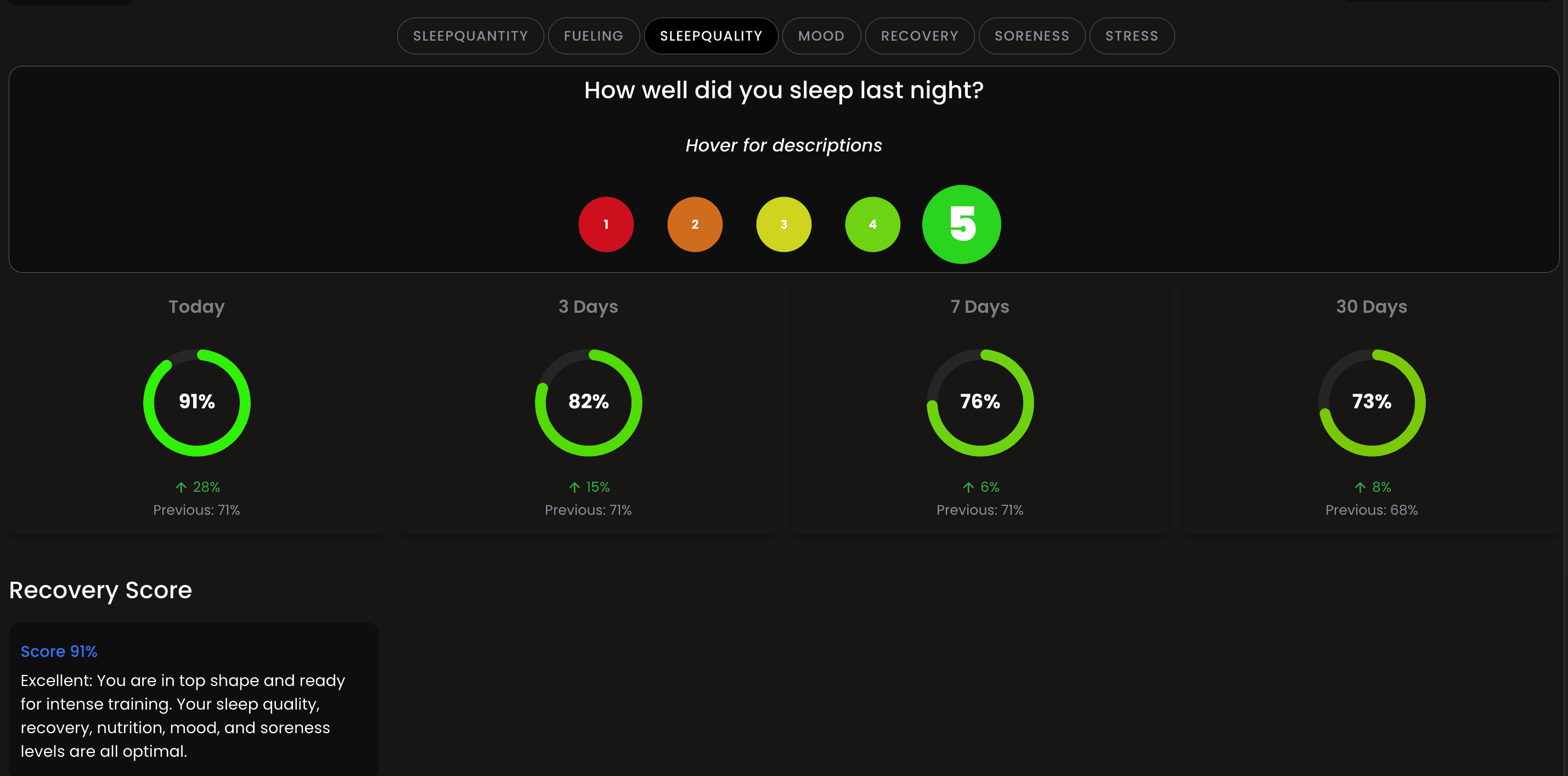 Unique daily questions and analytics help athletes prioritize recovery and prevent injuries.